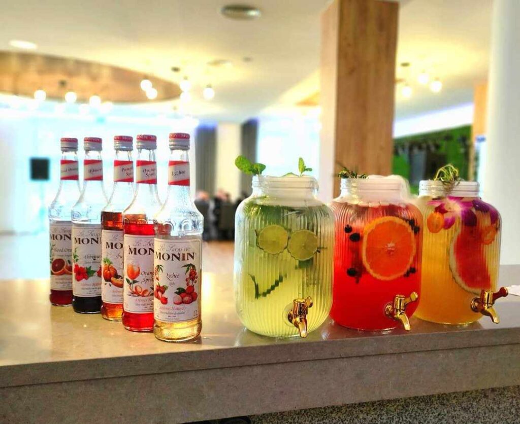 - Wydajemy koktajle bez limitu ( drinki z menu oraz wszelkie inne, które jesteśmy w stanie zrobić z szerokiej gamy syropów i likierów, które posiadamy w barze )